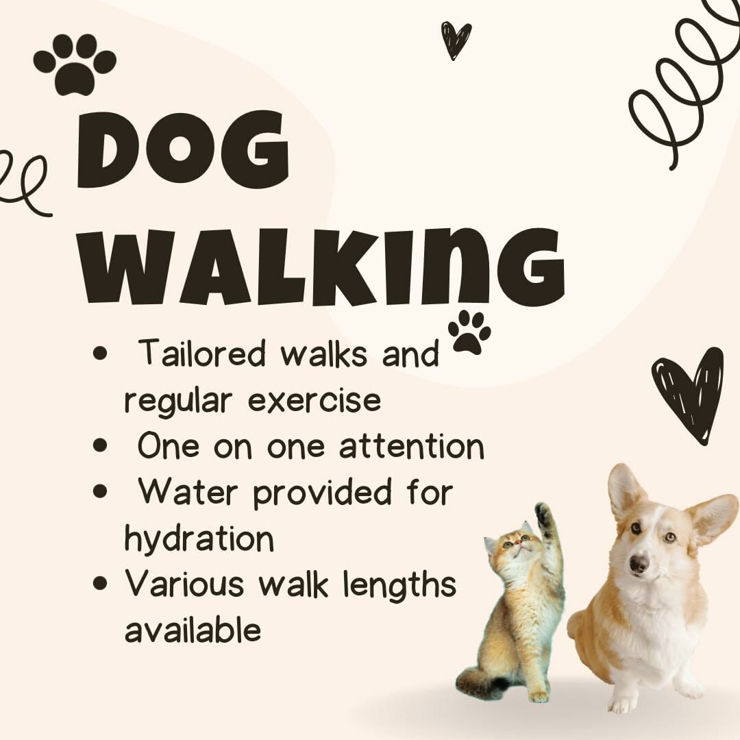 Your dog will be walked in a safe environment providing exercise and mental stimulation. Your dog will be walked solo with 1-1 attention provided by myself and brought home happy and tired.